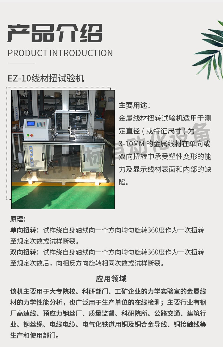 金屬線材扭轉試驗機適用于測定直徑(或特征尺寸)為3-10mm 的金屬線材在單向或雙向扭轉中承受塑性變形的能力及顯示線材表面和內部的缺陷。 二、原理: 單向扭轉:試樣繞自身軸線向一個方向均勻旋轉360度作為一次扭轉至規(guī)定次數(shù)或試樣斷裂。 雙向扭轉:試樣繞自身軸線向一個方向均勻旋轉360度作為一次扭轉至規(guī)定次數(shù)后,向相反方向旋轉相同次數(shù)或試樣斷裂。 金屬線材扭轉試驗機適用標準: 金屬線材扭轉試驗機適用于中華人民共和國標準GB/T 239.1-2012《金屬材料 線材 第一部分 單向扭轉試驗方法》、GB/T 239.2-2012《金屬材料 線材 第二部分 雙向扭轉試驗方法》,也適用于國際標準ISO 7800:2003《金屬線材單向扭轉試驗方法》和ISO 9649:1990《金屬線材雙向扭轉試驗方法》。 金屬線材扭轉試驗機應用領域: 該機主要用于大專院校、科研部門、工礦企業(yè)的力學實驗室的金屬線材的力學性能分析,也廣泛用于生產單位的在線檢測;主要行業(yè)有鋼廠高速線、預應力鋼絲廠、質量監(jiān)督、科研院所、公路交通、建筑行業(yè)、鋼絲繩、電線電纜、電氣化鐵道用銅及銅合金導線、銅接觸線等生產和使用部門。更多金屬線材扭轉試驗機資料請聯(lián)系我們濟南信標自動化設備有限公司。專業(yè)生產液壓萬能試驗機,疲勞試驗機,扭轉試驗機,高溫蠕變試驗機,彈簧試驗機,彎曲試驗機,沖擊試驗機,彎曲強度試驗機,抗拉強度試驗機等。