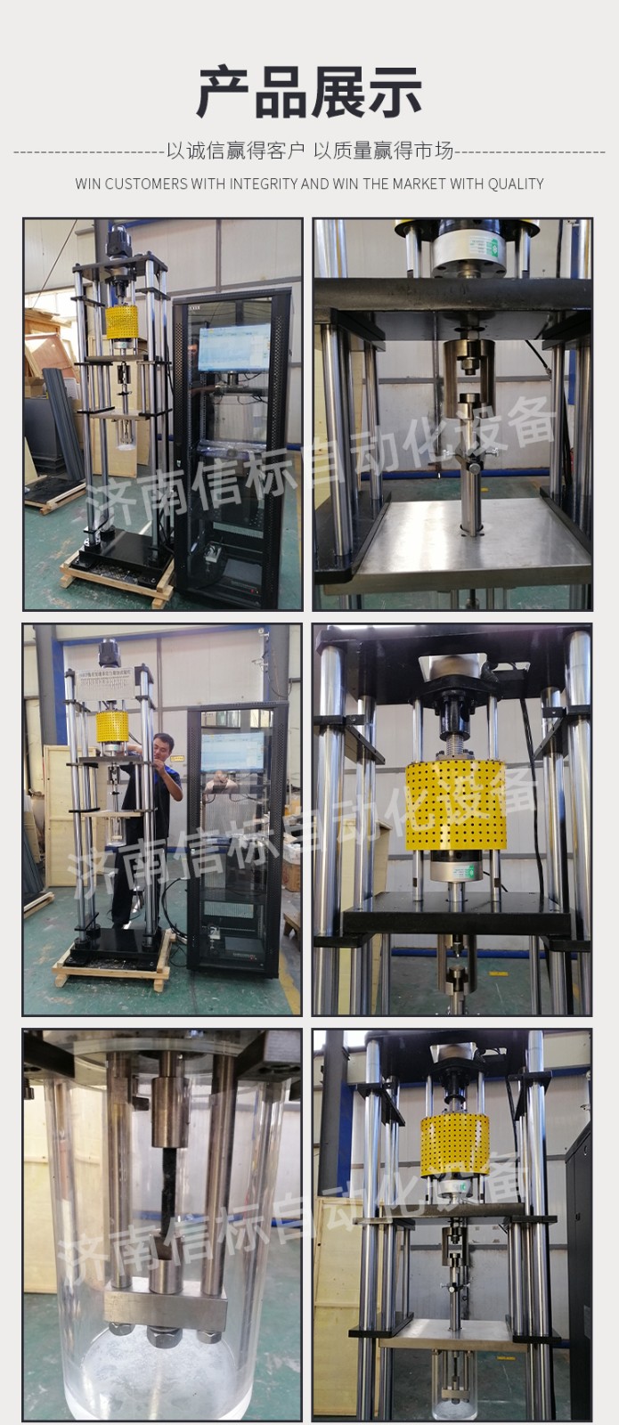 濟南信標自動化設備有限公司主要生產:動靜態(tài)萬能疲勞試驗機,接骨板彎曲試驗機,縫合線拉伸疲勞試驗機,髖膝關節(jié)磨損試驗機,電子萬能試驗機、液壓萬能試驗機、巖石三軸、四軸,電液拉力試驗機,材料試驗機,高低溫蠕變,高低頻疲勞,拉伸、扭轉、杯突等二十多個系列兩千多個的品種。