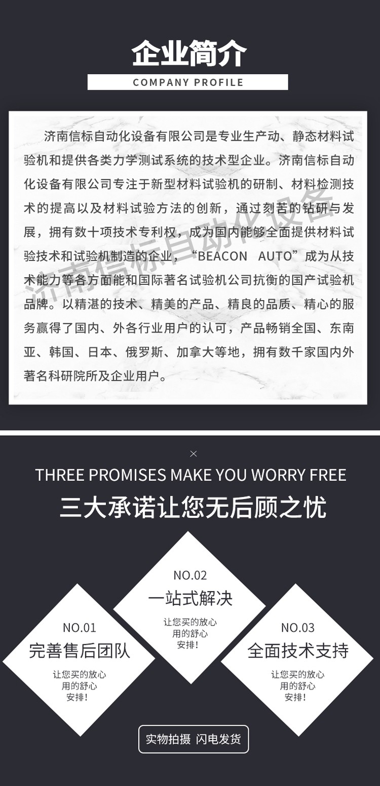濟南信標自動化設(shè)備有限公司主要生產(chǎn):動靜態(tài)萬能疲勞試驗機,接骨板彎曲試驗機,縫合線拉伸疲勞試驗機,髖膝關(guān)節(jié)磨損試驗機,電子萬能試驗機、液壓萬能試驗機、巖石三軸、四軸,電液拉力試驗機,材料試驗機,高低溫蠕變,高低頻疲勞,拉伸、扭轉(zhuǎn)、杯突等二十多個系列兩千多個的品種。