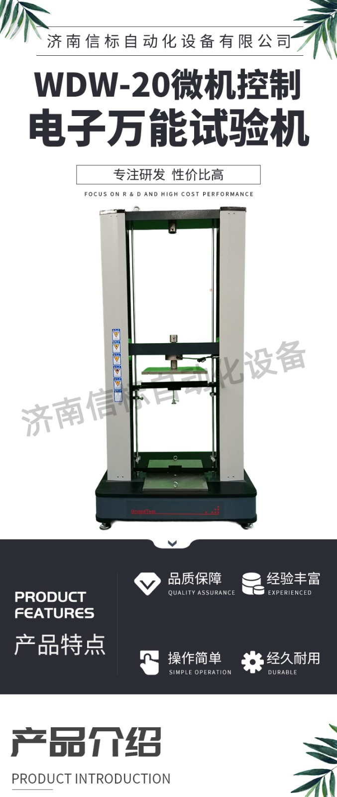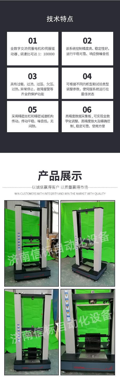 測(cè)量參數(shù): 1. 最大試驗(yàn)力: 10/20/30/50kN 2. 試驗(yàn)力測(cè)量范圍: 0.4%--100%。 3. 試驗(yàn)力示值精度:優(yōu)于示值±1% 4. 試驗(yàn)力分辨力:1/500000 5. 橫梁位移測(cè)量精度:分辨率高于0.0025mm 6. 變形測(cè)量精度: ±0.5% 7. 試驗(yàn)速度范圍:0.0002—500mm/min,無(wú)級(jí)調(diào)速 8. 速度控制精度:±1%(0.0002~50mm/min); ±0.5%(50~3500mm/min) 9. 恒力、恒變形、恒位移控制范圍: 0.2%-100%FS 10.恒力、恒變形、恒位移控制精度: 設(shè)定值<10%FS時(shí),設(shè)定值的±1.0%以內(nèi) 設(shè)定值≥10%FS時(shí),設(shè)定值的±0.1%以內(nèi) 11. 變形速率控制精度: 速率<0.05%FS時(shí)為±2.0%設(shè)定值內(nèi) 速率≥0.05%FS時(shí)為±0.5%設(shè)定值內(nèi) 12. 試驗(yàn)空間: A.拉伸空間:1000mm B.壓縮空間:1100mm C.寬度:450mm 13.下工作臺(tái):450*250 14. 壓盤尺寸:φ100 mm 15. 整機(jī)電源:單相,220V±10%,50Hz,功率:750 W 16. 工作環(huán)境:室溫—35℃,相對(duì)濕度不超過(guò)80% 17. 主機(jī)尺寸: 870×730×1750mm 18. 重量:400 kg 產(chǎn)品配置: 1、主機(jī) 一套 2、松下A7全數(shù)字伺服電機(jī)及伺服驅(qū)動(dòng)器; 一套 3、高精度負(fù)荷傳感器; 5kn/1kn/500N/200/ 各一支 4、Hiwin精密滾珠絲杠; 2支 5、光電編碼器(2500線,內(nèi)置); 1支 6、夾具:滿足海綿/汽車座椅所需工裝 1套(有多種) 7、三閉環(huán)測(cè)量系統(tǒng)一套,采用力,位移,應(yīng)變等多種控制方式,試驗(yàn)過(guò)程中可實(shí)時(shí)顯示力-位移,力-時(shí)間,應(yīng)力-應(yīng)變等多種試驗(yàn)曲線,并可自動(dòng)得出最大負(fù)荷,拉伸強(qiáng)度,斷裂伸長(zhǎng)率等多種 結(jié)果參數(shù)。 8、HP品牌計(jì)算機(jī),21寸液晶顯示器; 9、打印機(jī):HPA4彩色噴墨打印機(jī); 10、專用試驗(yàn)軟件:可執(zhí)行GB,ISO,JIS、DIN,ASTM等多種試驗(yàn)標(biāo)準(zhǔn),全開(kāi)放式,功能強(qiáng)大,方便操作,免費(fèi)提供升級(jí)軟件,并可根據(jù)用戶需求自行編輯試驗(yàn)軟件。