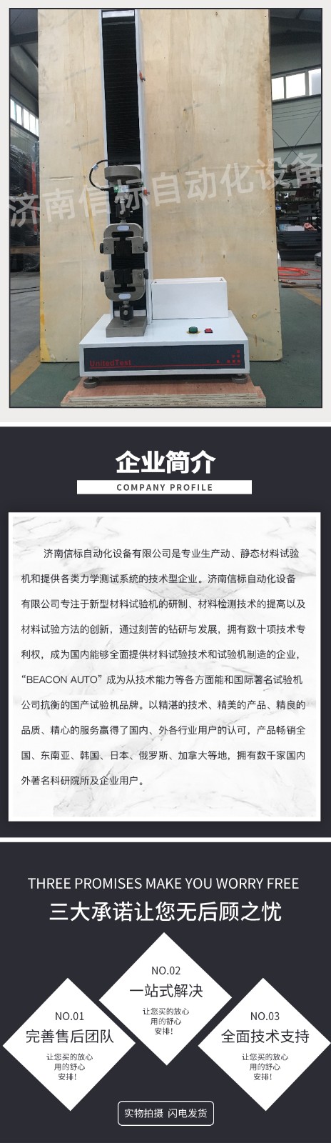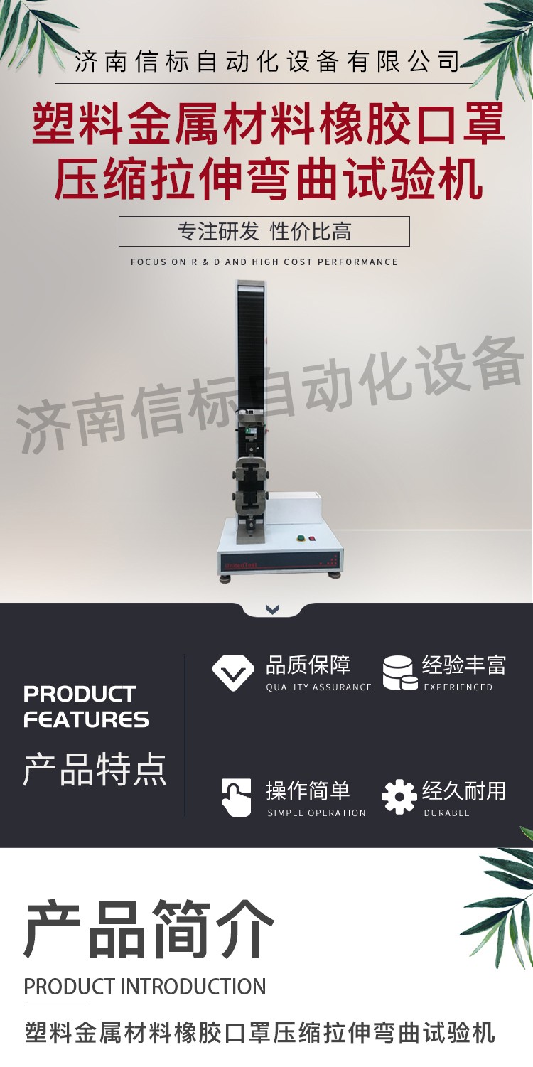 金屬材料壓縮彎曲實(shí)驗(yàn)口罩塑料拉伸強(qiáng)度試驗(yàn)機(jī)主要技術(shù)指標(biāo): 1、最大試驗(yàn)力: 100N/200N/500N/1KN/2KN/5KN 2、測 量 范 圍: 最大試驗(yàn)力的2%—100% 3、試驗(yàn)機(jī)精度級(jí)別:1級(jí) 4、試驗(yàn)力準(zhǔn)確度: 優(yōu)于示值的±1% 5、橫梁位移測量: 分辨率為0.01mm 6、變形準(zhǔn)確度: 優(yōu)于±1% 7、調(diào) 速 范 圍: 0.05-500mm/min 8、試 驗(yàn) 空 間: 950mm 9、主 機(jī) 形 式: 單臂式結(jié)構(gòu) 10、主 機(jī) 尺 寸: 約600×420×1150 11、重 量: 約90Kg 12、工 作 環(huán) 境: 室溫~45℃,濕度20%~80%