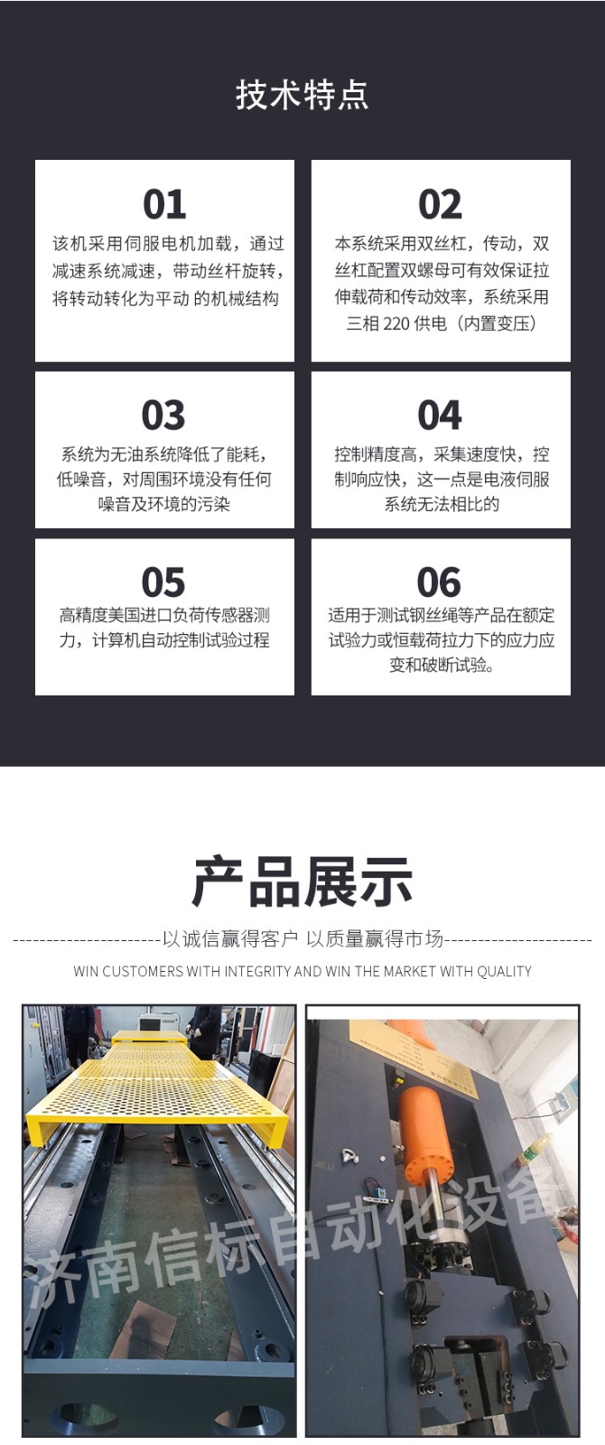 試驗(yàn)標(biāo)準(zhǔn): GB/T 8358-2014 鋼絲繩實(shí)際破斷拉力測定方法 GB∕T 1179-2008 圓線同心絞架空導(dǎo)線 DL/T 832-2003 光纖復(fù)合架空地線 DL/T 788-2001 全介質(zhì)自承式光纜 GB/T 7424.4-2003 光纜 第4部分:分規(guī)范 光纖復(fù)合架空地線 IEC 60794.4-2009 光纜 第4部分:分規(guī)范 輸電線架空光纜 IEEE 1138-2009 電力事業(yè)用電線的復(fù)合光纖架空地線的建造標(biāo)準(zhǔn) GB/T16491-2008 電子式萬能試驗(yàn)機(jī) GB/T228.1-2010 金屬材料室溫拉伸試驗(yàn) GB/T4909.3-2009 裸電線試驗(yàn)方法 第3部分:拉力試驗(yàn) GB/T14049-2008 額定電壓10KV架空絕緣電纜 GB/T12527-2008 額定電壓1KV及以下架空絕緣電纜 GB/T3955-2009 電工圓鋁線 GB/T17048-2009 架空絞線用鋁線 GB/T17939-2009 電工用鋁包鋼線 GB/T3428/2012 架空絞線用鍍鋅鋼線 三、主要技術(shù)指標(biāo): 1. 最大試驗(yàn)力:300kN 2. 試驗(yàn)力測量范圍:0.4%--100% (可由國家計量部門負(fù)責(zé)計量檢定、并出具計量合格證書) 3. 試驗(yàn)力示值精度:優(yōu)于示值±1% 4. 試驗(yàn)力分辨力:1/500000(全程不分檔) 5. 橫梁位移測量精度:分辨率高于0.001mm 6. 變形測量精度:±1% 7. 試驗(yàn)速度范圍:0.001—300mm/min,無級調(diào)速 8. 速度控制精度:±1%(0.001~10mm/min); ±0.5%(10~500mm/min) 9. 恒力、恒變形、恒位移控制范圍: 1%-100%FS 10.恒力、恒變形、恒位移控制精度: 設(shè)定值<10%FS時,設(shè)定值的±1.0%以內(nèi) 設(shè)定值≥10%FS時,設(shè)定值的±0.1%以內(nèi) 11. 變形速率控制精度: 速率<0.05%FS時為±2.0%設(shè)定值內(nèi) 速率≥0.05%FS時為±0.5%設(shè)定值內(nèi) 12. 試驗(yàn)空間: A:拉伸空間:100000mm B:寬度:500mm 13.加載頭有效行程:1500mm 14. 裝夾方式:插銷式 15. 壓盤尺寸:φ150 mm 16. 整機(jī)電源:220V±10%,50Hz,功率:2kW 17. 工作環(huán)境:室溫—35℃,相對濕度不超過80%